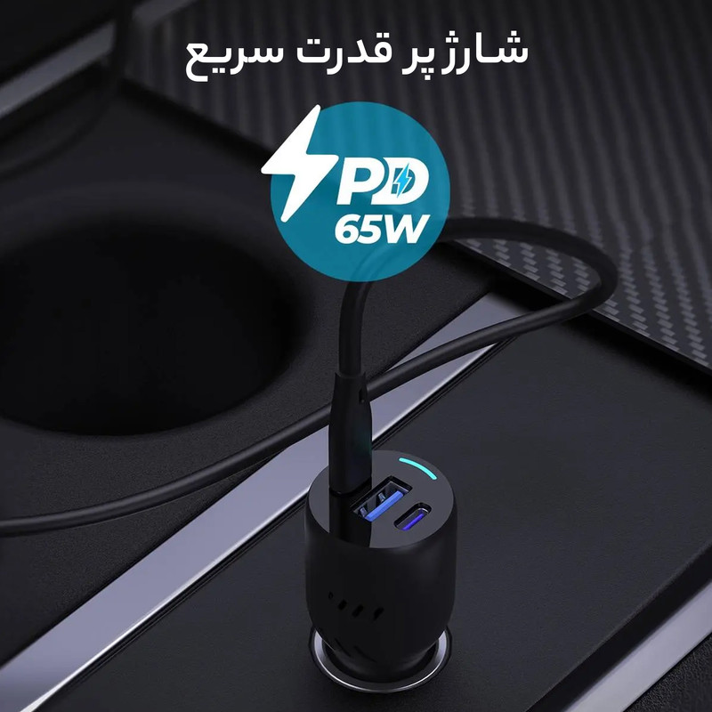 شارژر فندکی 65 وات پاورولوژی مدل PD